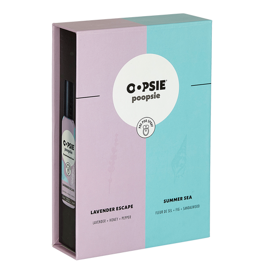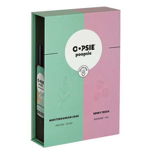 Looking for a unique and practical gift? Look no further than Oopsie Poopsie's Giftable 2 Pack Scents! Our Mediterranean Sage and Berry Fresh pre-poo toilet spray is just one of the amazing fragrances included in this set.